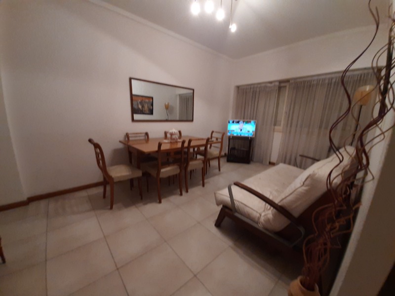 En alquiler por temporada de verano 2025/2026 . Amplio living comedor con sofa marinero (1 cama de 1 plaza. 1 carrito para niño, ventana al lateral y vista a la calle muy soleado y luminoso. con tv. directv prepago a cargo del pasajero, wiffi libre en la unidad, cocina con heladera freezer, microondas, tostadora, pava electrica, utensillos de cocina. baño completo con bañera, placard con 2 reposeras y sombrilla + heladora de playa, dormitorio amplio con sommier de 2 plazas de 1,50 de ancho, placard con frazadas, perchas, almohadas. ventana al lateral y vista a la calle muy soleado y luminoso. Departamento totalmente equipado para 3/4 personas. Ubicado a 100 mts. de Peatonal San Martin, y a 200 Mts. de Playas , Punta Iglesia y rambla casino. Alquiler minimo en verano 7 dias calendario. HAY COCHERAS DISPONIBLES EN LAS CERCANIAS.